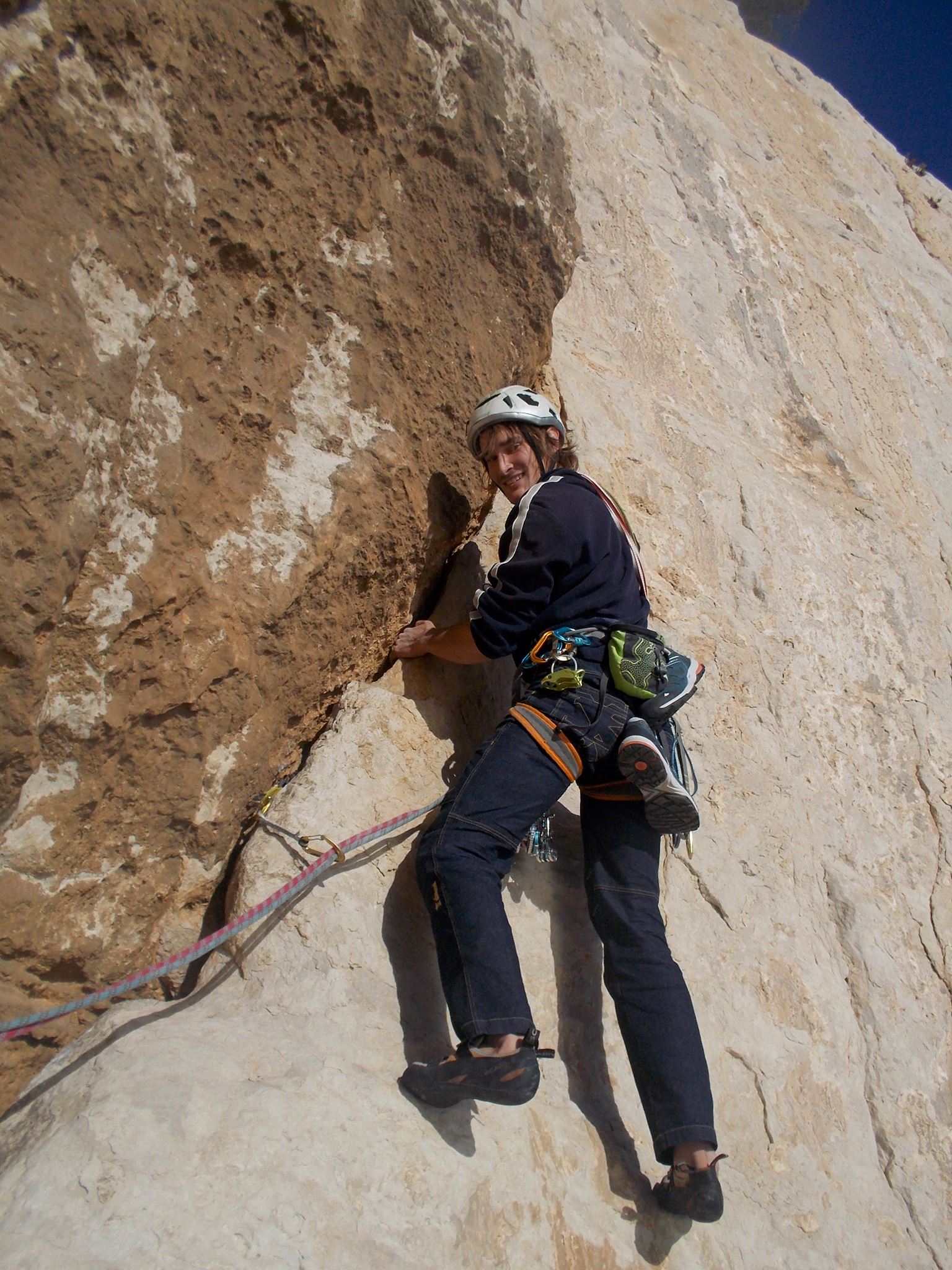 Reliable, serious and careful, I succeded the French formation of DEJEPS – “Milieux Naturel” at Montpellier, which needs two gym onsight F6c and F7a, and trad climb E4 or F6c/7a on big walls. This diploma is more thorough than old BE (brevet d’état), with a full programme on trad climbing and sport training.