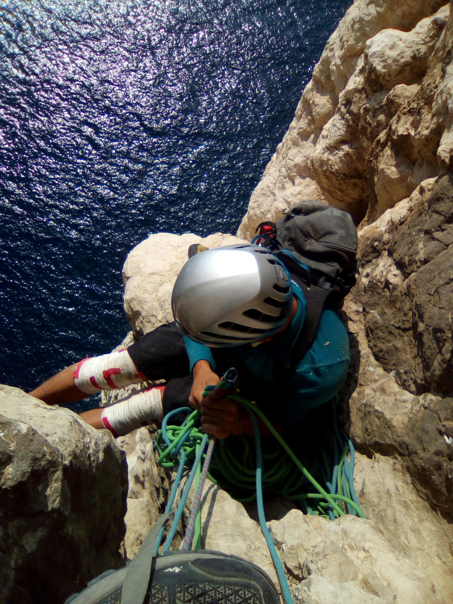 Vous trouverez dans cette page les voies que j’ai préféré parcourir dans le beau massif des Calanques. La liste est loin d’être exhaustive, mais j’espère que vous saurez déjà apprécier ceux déjà en ligne. De mon côté, je m’emploie à vous la compléter ! Je ne présente en revanche ni les accès, ni les retours et les quelques rares schémas seront retirés, sauf des voies que j’ai ouvertes. En effet, l’achat du topo permet, en plus de valoriser ici un travail passionné et parfaitement réalisé, de soutenir l’escalade locale. Cela ne sert pas qu’à payer les points de réequipement, mais cela permet également un fond qui soutient les actions locales de préservations (gestion des usages avec le Parc National et les différents propriétaires, conflits, etc…), et est indispensable au bon fonctionnement de la grimpe chez nous !
