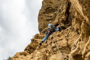 Nous connaissons tous la bonne réputation des voies équipées, nettoyées et purgées du Cap Canaille. La plupart ne pourraient de toutes façons pas se parcourir autrement, car le conglomérat ne se prête absolument pas aux protections naturelles et le calcaire local n’est souvent pas d’une grande qualité. Alors qu’en est il du grès? Sur cette paroi du Cap Canaille même, l’ensemble est entièrement composé de grès. Celui-ci est très régulièrement parcouru, par les six voies équipées du coin, mais reste parfois de qualité variable, et forme parfois de larges vires. Mais (presque) 300 mètres de trad’ sur du grès, ça donne quand même envie!