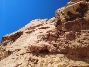 Au centre de la plus haute paroi de Cap Canaille, la voie « ciao Bella » est l’une des plus réputées de ce petit massif. Nous sommes ici encore sur le côté nord de la crête, qui se compose donc uniquement ou presque de grès, ce rocher si particulier qui fait la beauté du site. Ce dernier a parfois mauvaise réputation, notamment vers les secteurs situés vers Cassis, mais il est ici, dans cet itinéraire, tout simplement fabuleux. « Ciao Bella » remonte des murs variés d’une très grande qualité, avec des longueurs dans des styles divers mais toujours agréables à grimper, rares en extérieurs dans un niveau 6ième degré.