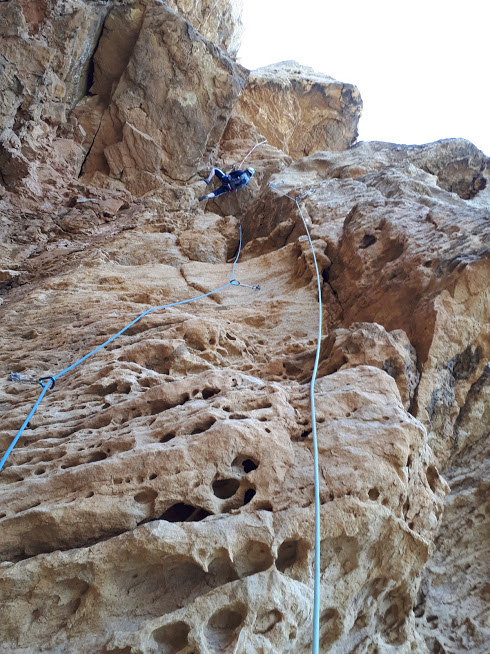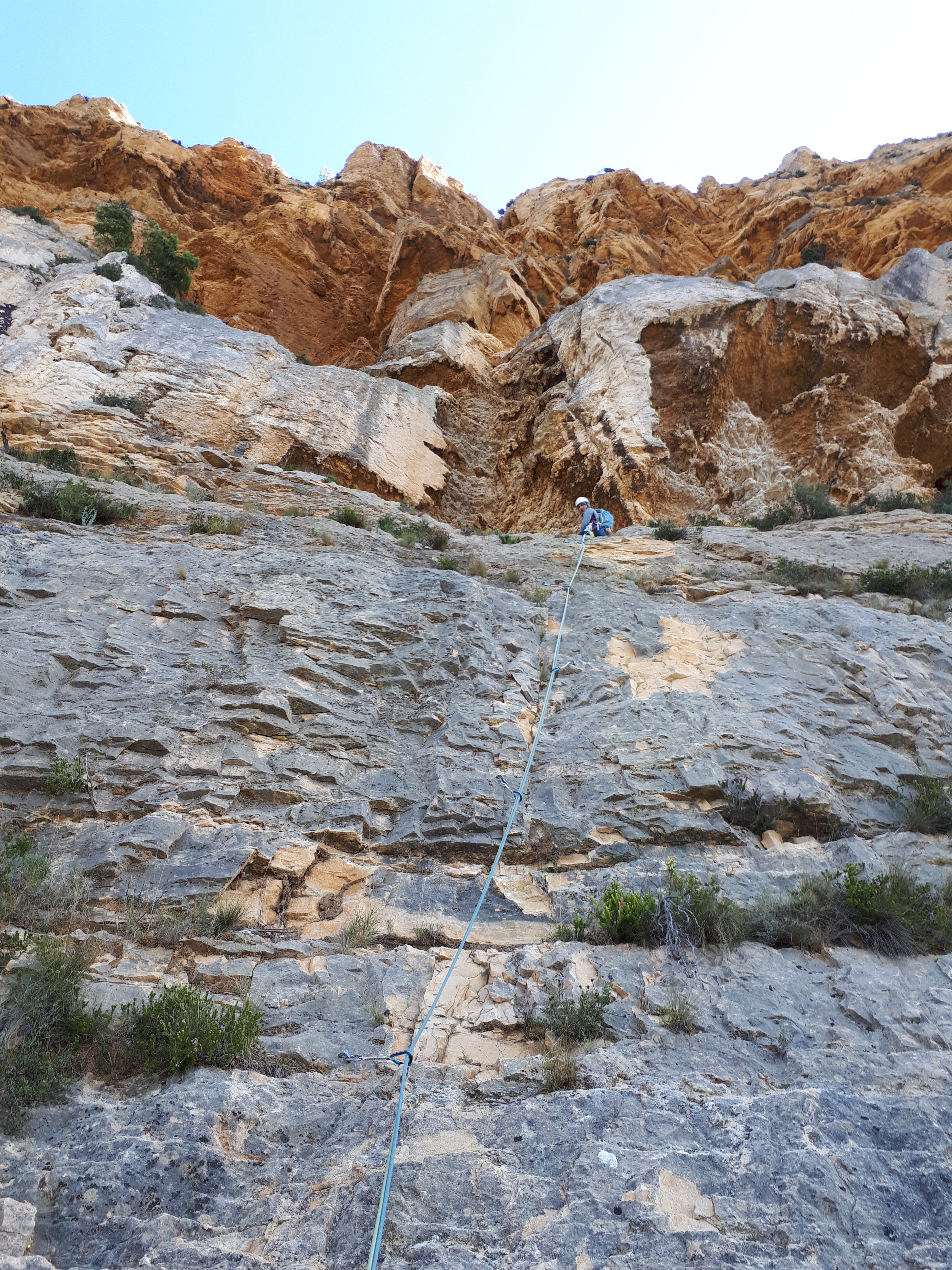 L2 : 6a+; Raide et facile au début avec un pas plus dur ensuite en dièdre.