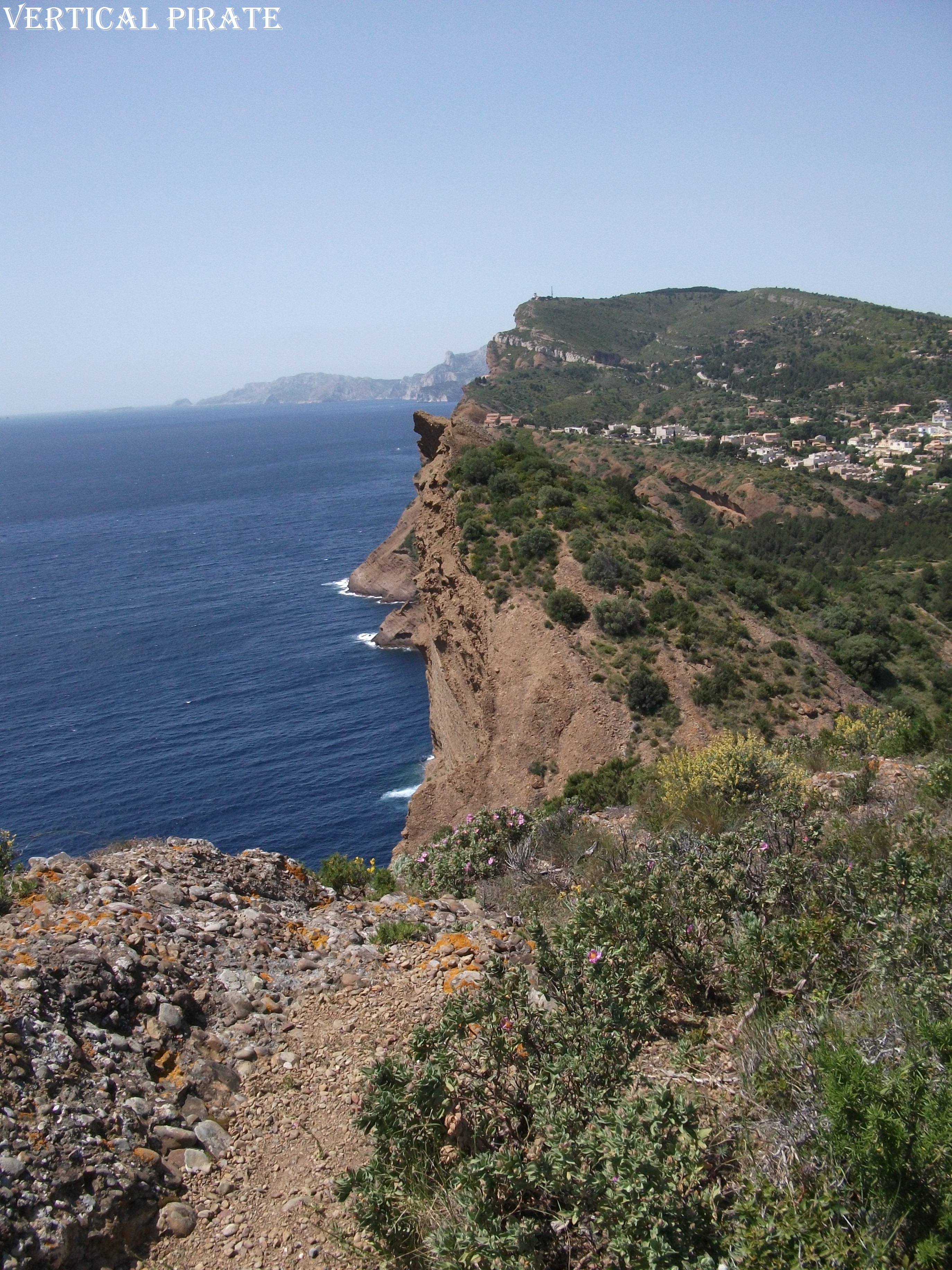 L’équipement très espacé m’a dissuadé de prendre la tête. Nous ne sommes pas arrivés directement au sommet, mais au sentier qui y conduisait. Nous avons marché un peu pour pouvoir admirer cette « vague de rocher figée dans son déferlement », ainsi qu’une vue imprenable sur les calanques… Quelle magnifique récompense !