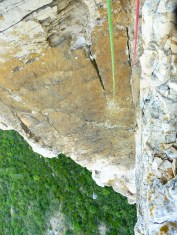 L4 : 6a; Droit au dessus le relais, fissure avec des points douteux. Après le mur raide traverser deux mètres à gauche.