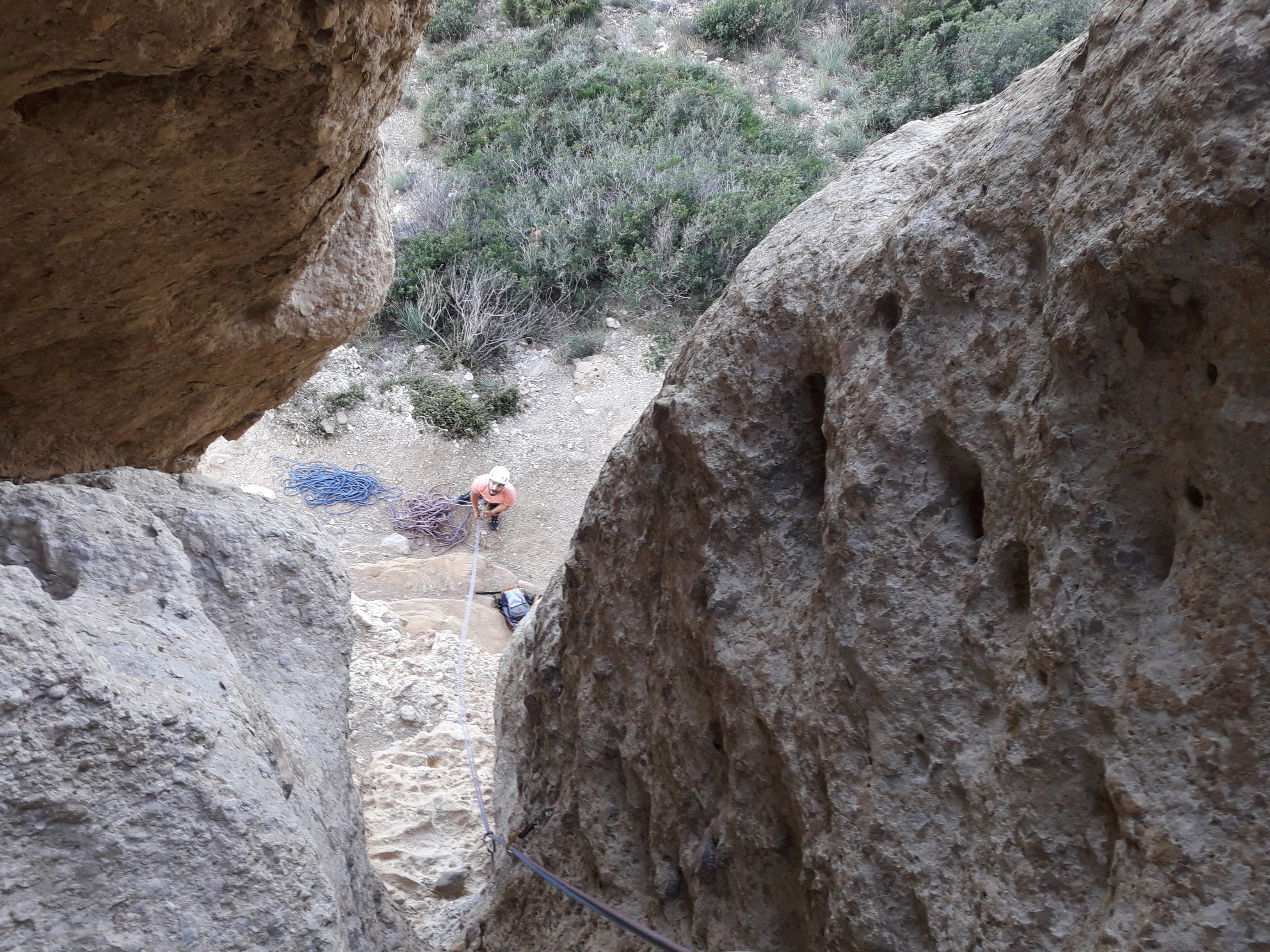 L3 : 4c; Escalade dans des formes rigolottes, vraiment sympa pour le niveau. Relais en sortie de dièdre.