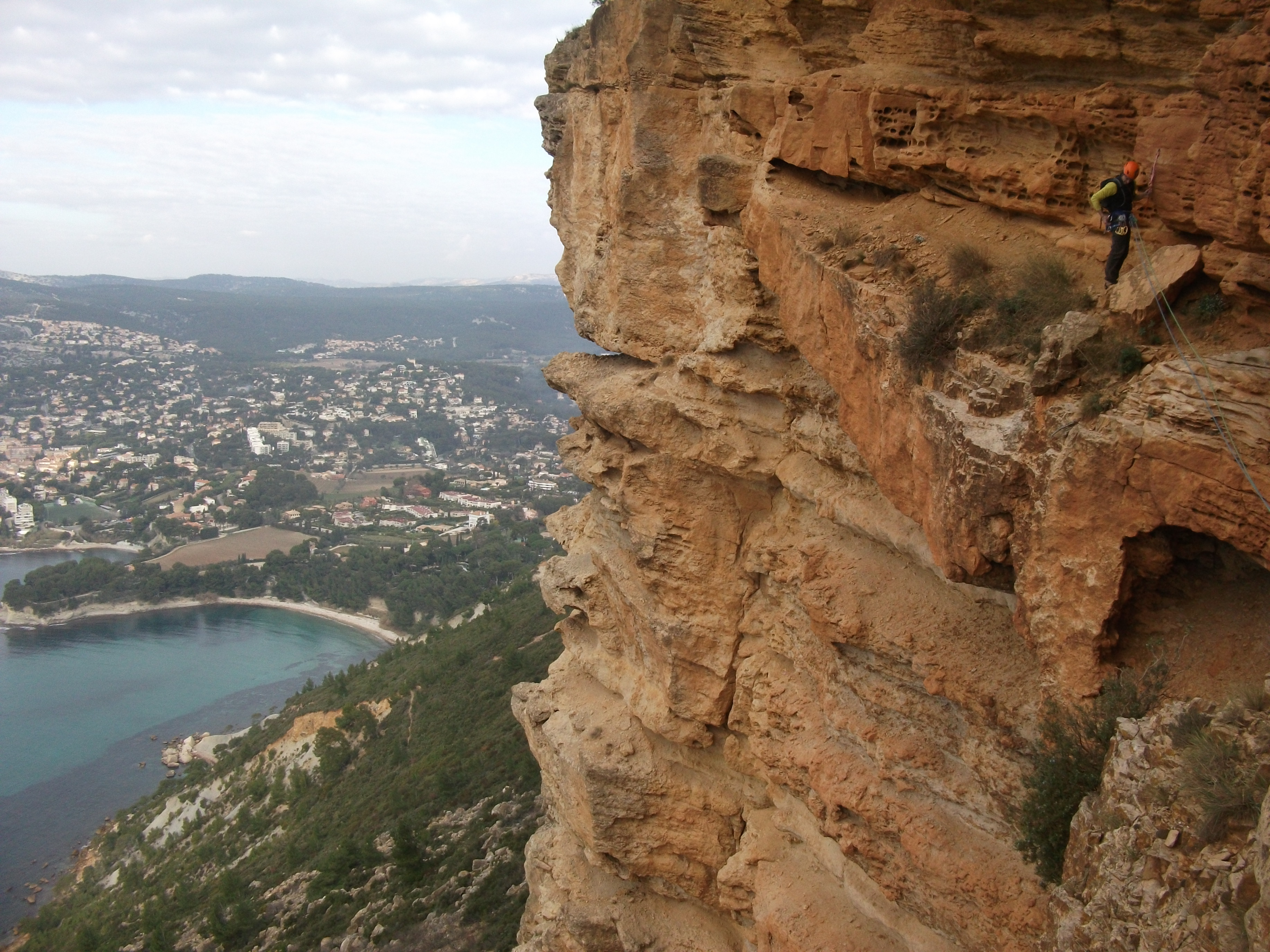 Voici un nom de voie qui ne donne pas envie, et pourtant! Cette voie est loin d’être une bouse, au contraire. C’est peut être même la voie la plus classique du Cap Canaille, c’est dire! Cela est dû à plusieurs facteurs. Tout d’abord, il s’agit, et de loin, de l’une des voies les plus faciles du massif, et son rocher est (après long nettoyage) devenu excellent. Ensuite, l’accès est on ne peut plus facile : sur le parking même, on marche à peine quelques dizaines de mètres et l’on arrive à une ligne de deux rappels aériens. Enfin, l’escalade y est très gratifiante, raide à bonnes prises, le tout avec une ambiance impressionnante malgré la faible hauteur à cet endroit de la paroi (90 mètres).