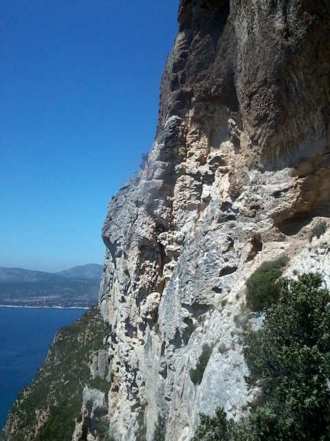 L1: 6b+, 30 mètres; Un pas très bloc, puis plus facile. La seule longueur imparfaite.