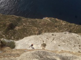 L7 : 6a; Un mouvement très physique au dessus le relais (traction!), puis dièdre majeur, raide et aérien jusqu’au sommet.