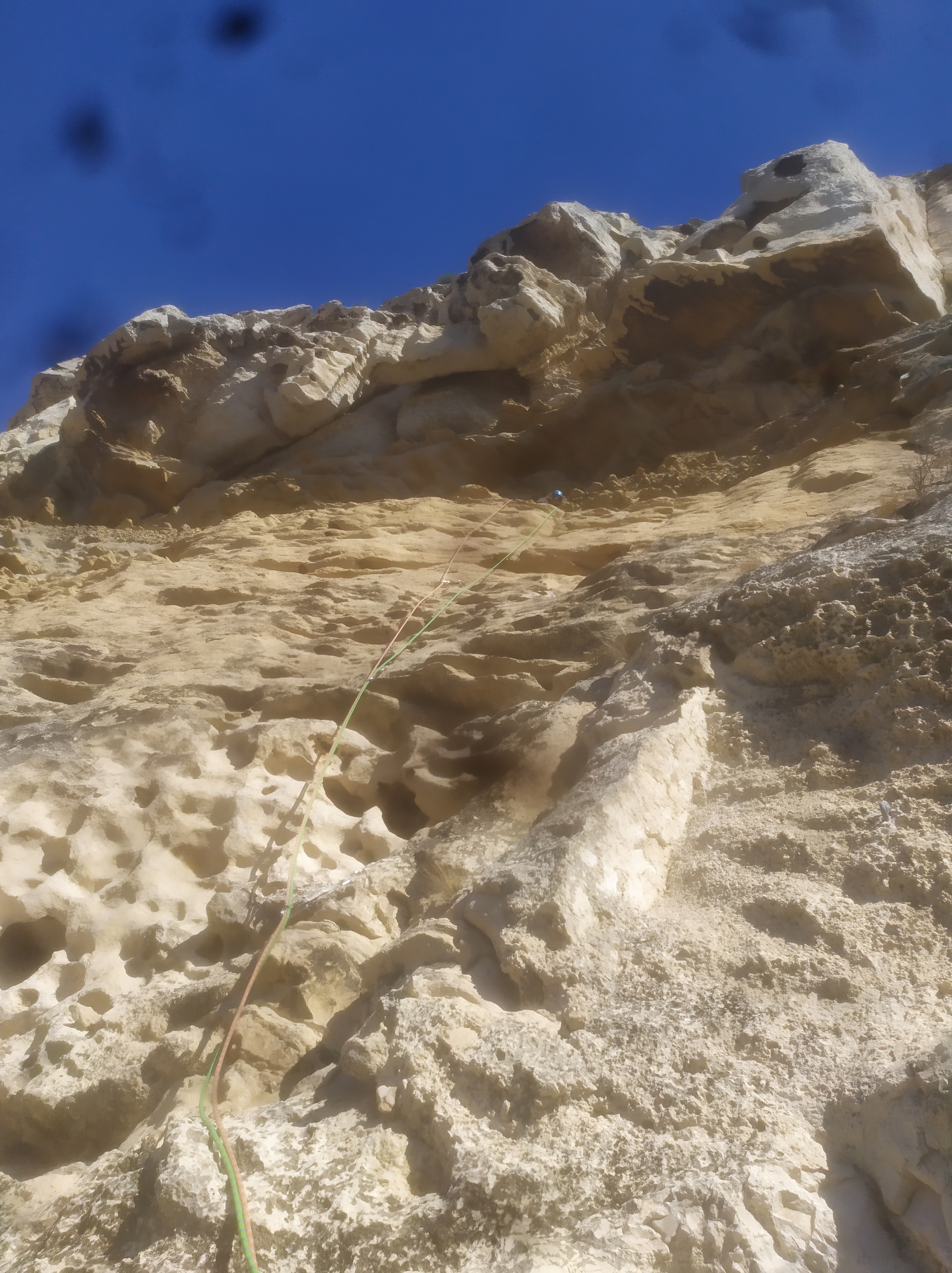 L3 : 6a; Très beau mur raide à bacs. On tire à gauche dans le haut du mur, puis l’on passe une mini grotte.
