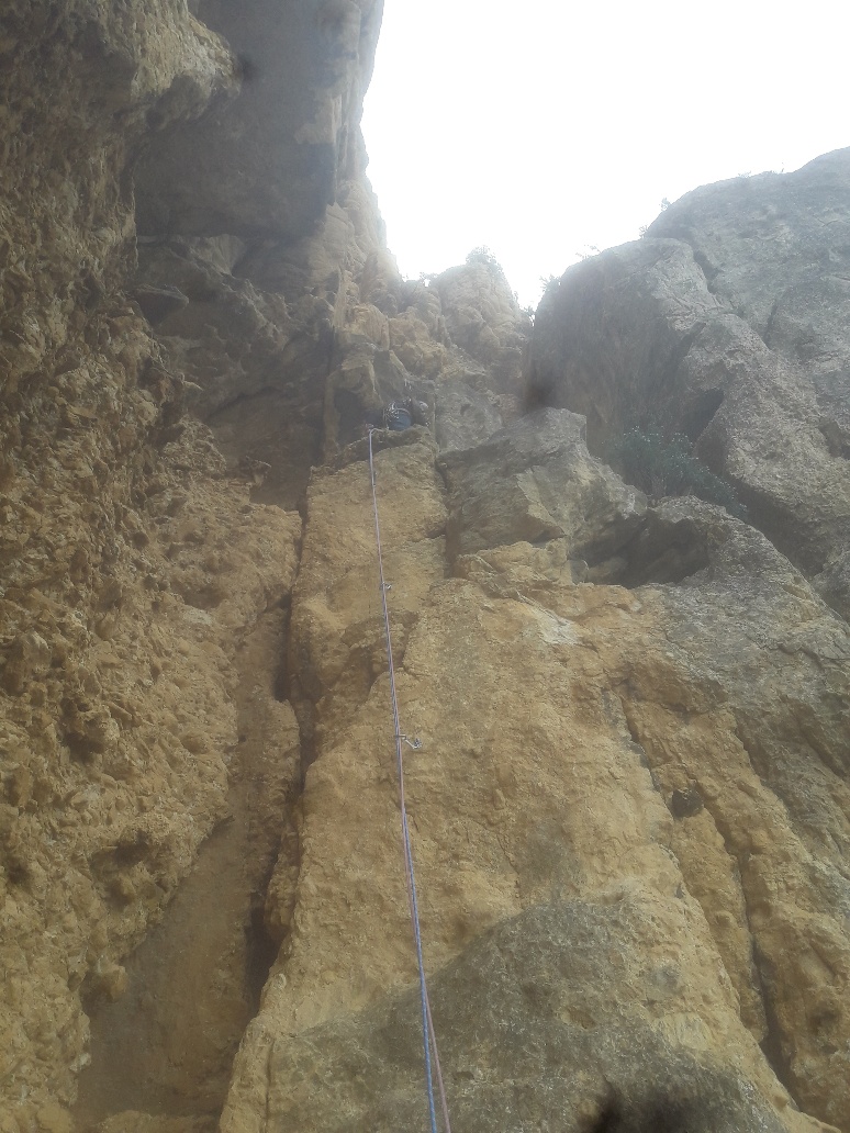 L5 : 6a(++); Dévers à bacs ronds puis mur pas si évident, très beau mais difficile à lire…