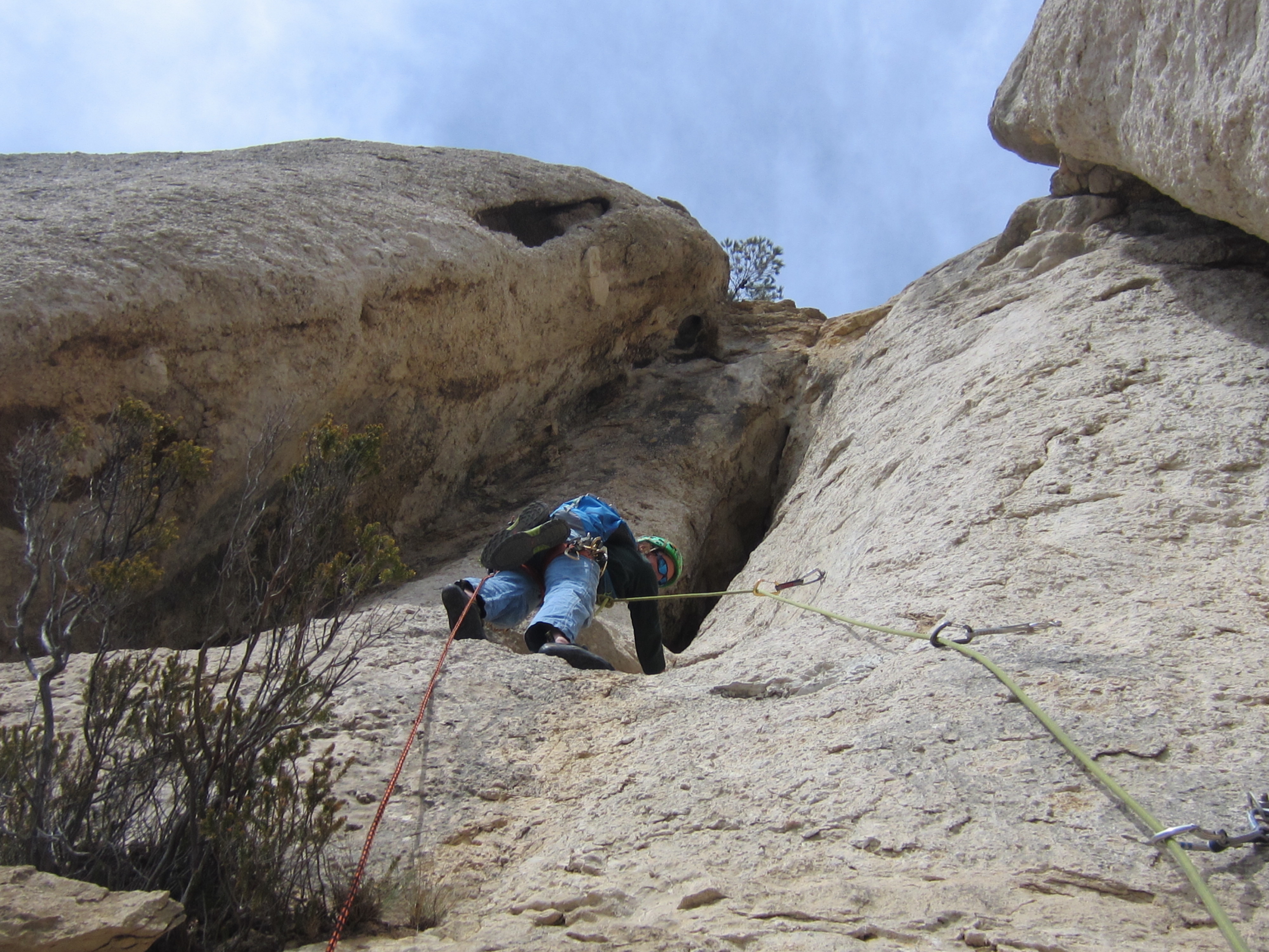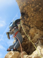 surplomb plus costaud, prises lisses et verrou dément ! Traverser ensuite à gauche, relais dans une niche.
