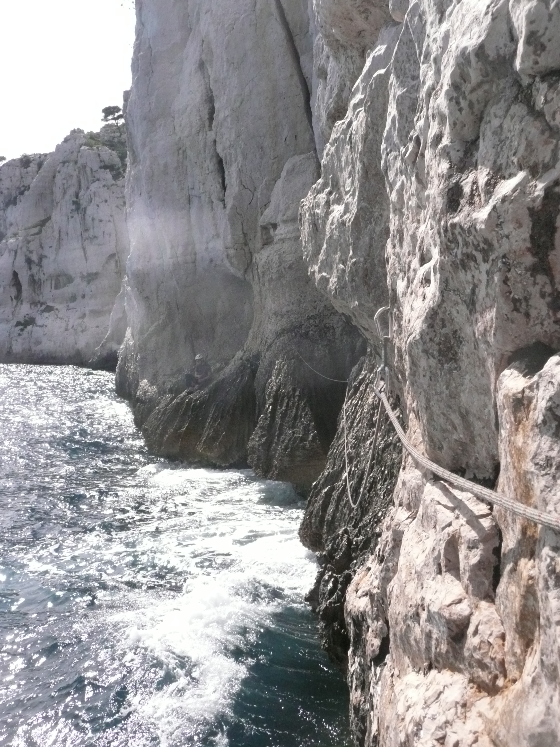 - Les deux papas, TD-, non équipée. La plus belle voie facile partant de la mer à Castelvieil.
