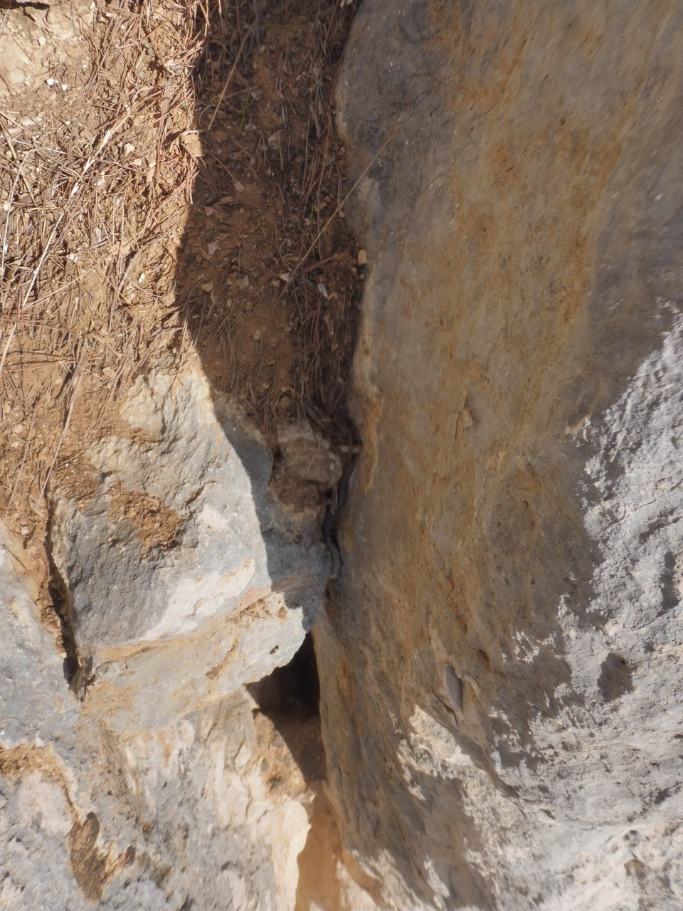 L2 : 6a+ (6b?), 30 mètres; Droit au dessus le relais, fissures larges (lunules), un mouvement magnifique et plus difficile en fissure large. Relais sur deux scellements.
