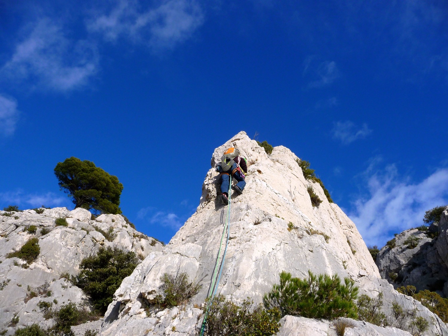 Située en bordure du cirque du Devenson, cette voie jouit probablement du plus beau paysage des Bouches du Rhône. On voit la côte s’escarper sur plusieurs kilomètres, laissant se profiler les blanches falaises de Castlvieil, avec en arrière plan les parois colorées du Cap Canaille, le tout jaillissant d’une mer dont on ne pourrait plus se passer dans les Calanques (à part peut être ceux qui sont tombés dedans par erreur…).