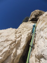 Une des belles voies des Calanques à faire, donc ! mais après sa voisine de gauche, encore plus classe… Quoi qu’il en soit, un grand merci aux ouvreur, nous avons beaucoup apprécié !