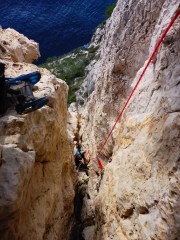 Les calanques et le terrain d’aventure, ou l’escalade « trad’ climbing ». A écouter les grimpeurs ou à lire les magazines, cette pratique y est marginale, et l’on entend que cela y est peu intéressant… c’est bien mal connaître le massif! En effet, on pourrait considérer qu’il s’agit d’un temple pour la discipline, et certains secteurs sont d’ailleurs plus intéressants pour les voies non équipées que celles clé en main. C’est bien le cas de la falaise de l’Oule, certes courte, mais vraiment sympa pour poser ses coinceurs.