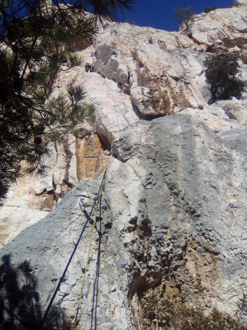 L1 : 6b; fissure athlétique superbe, que l’on abandonne sur la fin pour affronter un mur encore plus raide.