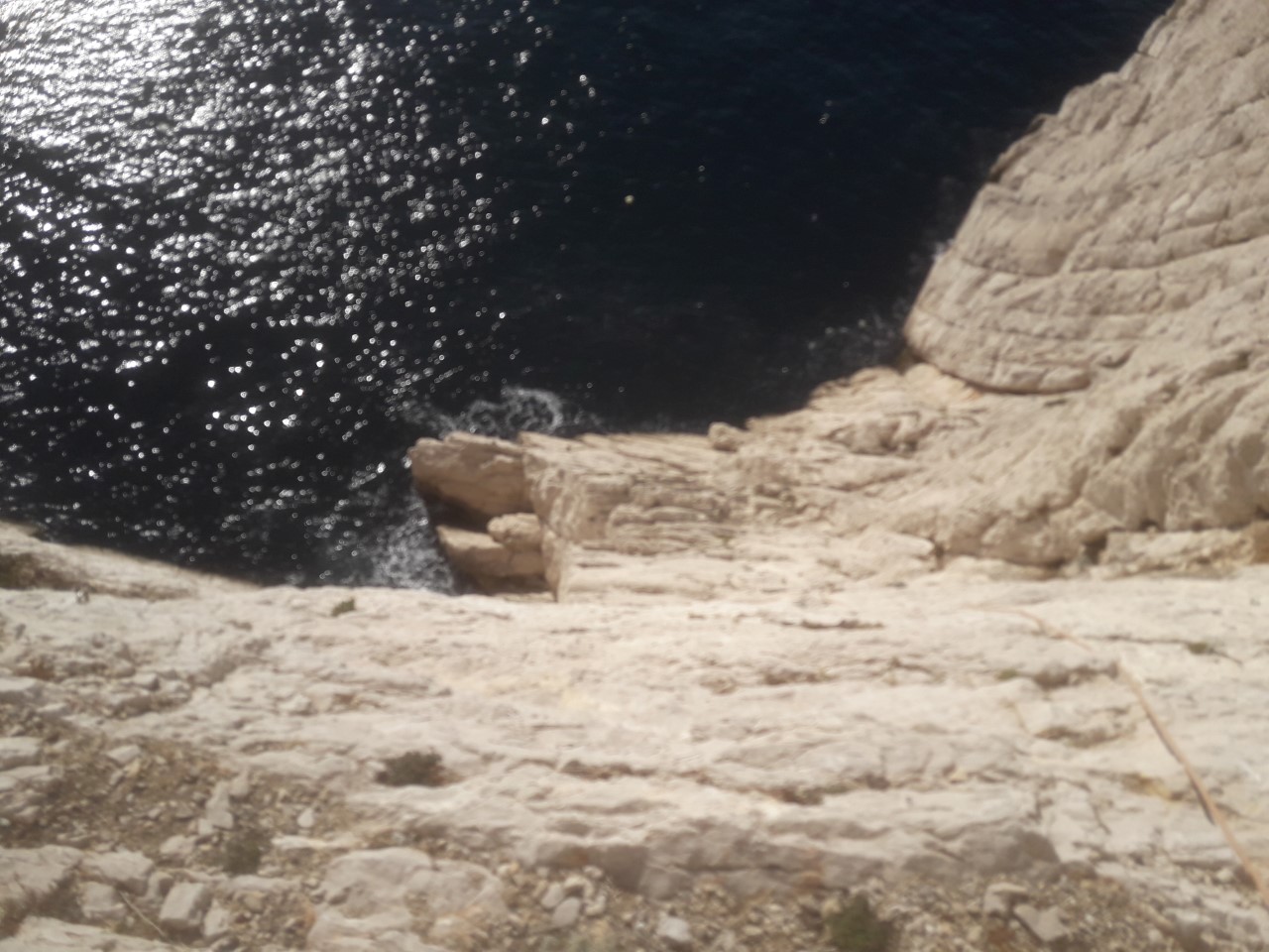 En voila une jolie voie facile, jolie, accessible et dans un pur style Calanques ! Bienvenue au Rumpe Cuou, un des secteurs phares du massif. De l’autre côté de la belle et tranquille calanque de Sormiou, nous trouvons cette magnifique dalle blanche, sculptée, tombant dans la mer. Les voies y sont (presque!) toutes faciles voir très faciles, et le rocher y est parfait. L’accès est rapide, le cadre, face aux îles, fabuleux, et l’ambiance ne peut que réjouir les grimpeurs en quête de contemplation.