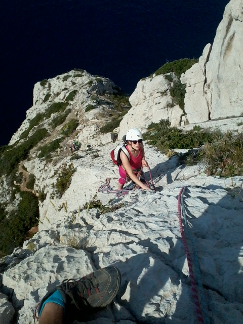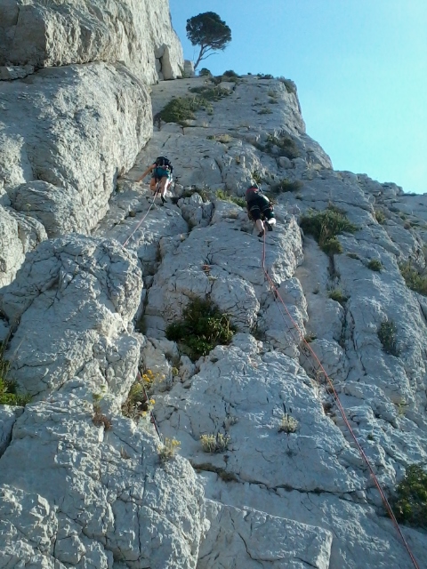 Descente : du sommet des voies, on desescalade quelques mètres versant Sormiou et l’on rejoint le tracé d’approche.