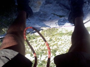 Matériel : grande voie sportive, éventuellement deux friends moyens pour les section faciles à l’équipement plus aéré