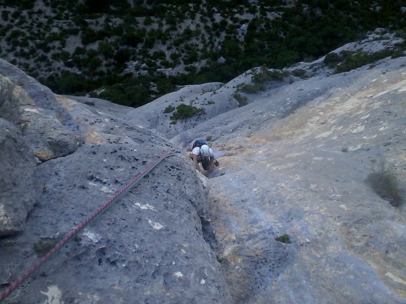L6 : 6c; crux en surplomb au début puis belle fissure large.