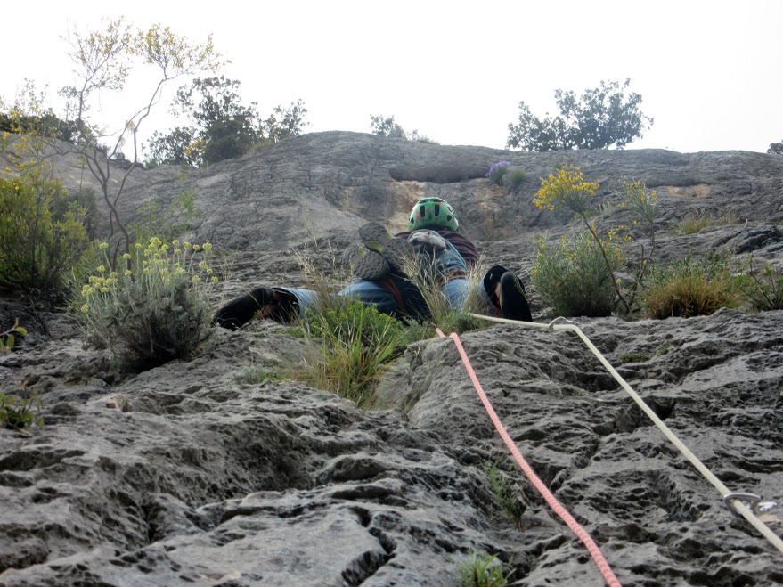L5 : 6b+; départ génial sur bacs, puis reta pas simple et arrivée engagée au relais.