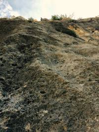 L4 : 6c; Crux au départ en traversée à gauche (teigneux) puis très soutenu/rési en 6b, vertical.