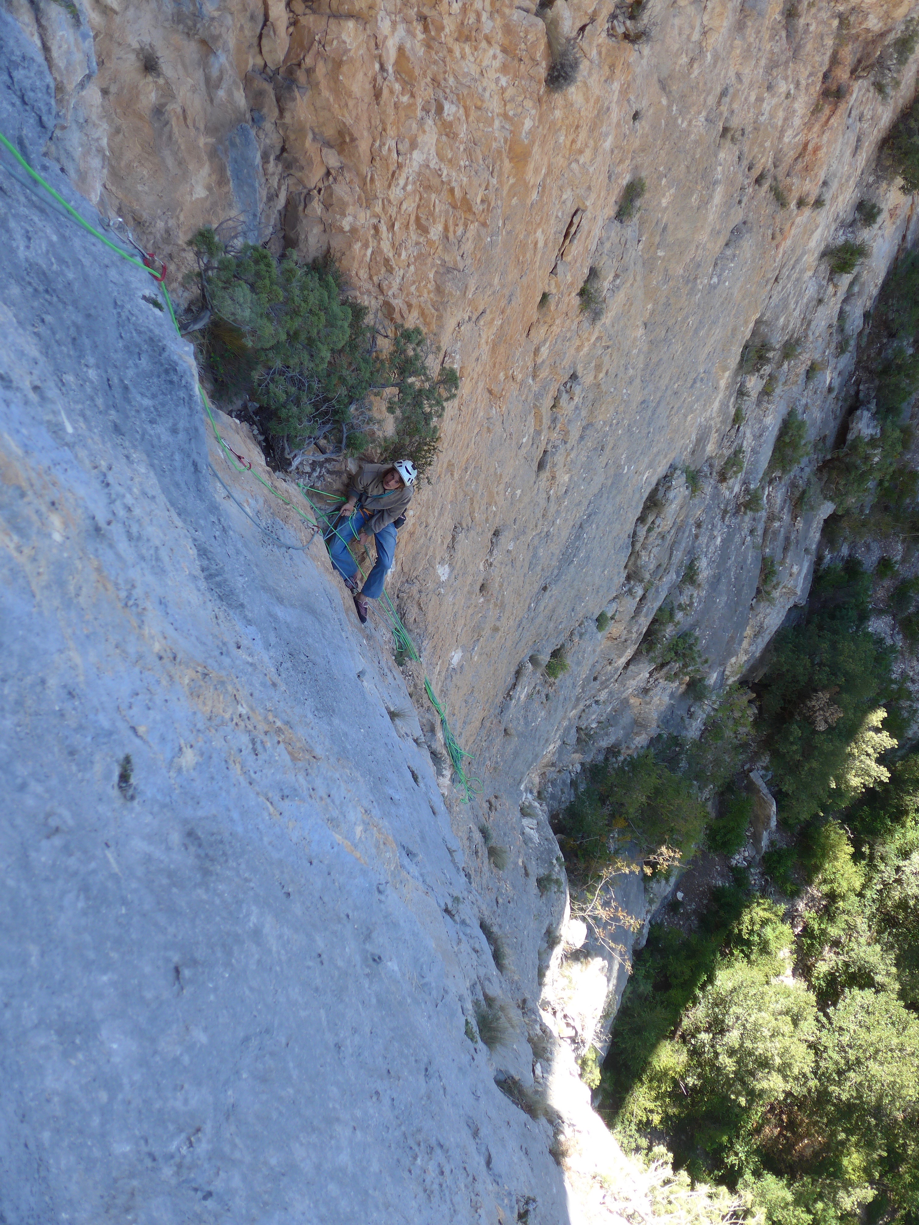 La plus facile de la paroi, elle est également un peu plus engagée : on remonte de très beaux murs gris typiques du coin, et l’équipement, sans être trop serré, reste abondant et bien pensé. L’escalade est technique, et si le départ n’est pas terrible, la fin facile reste magnifique. Attention à la corde pour les rappels !
