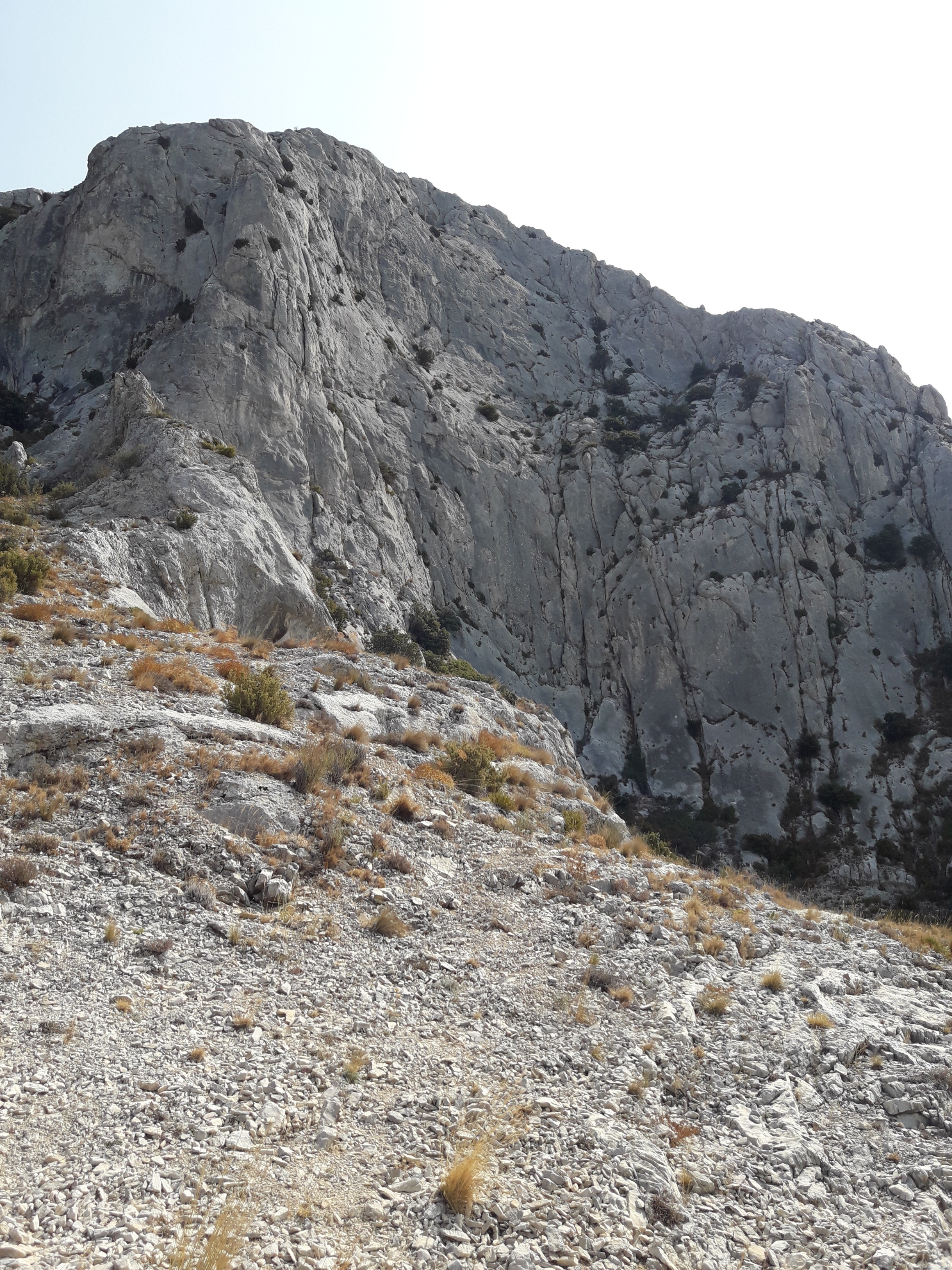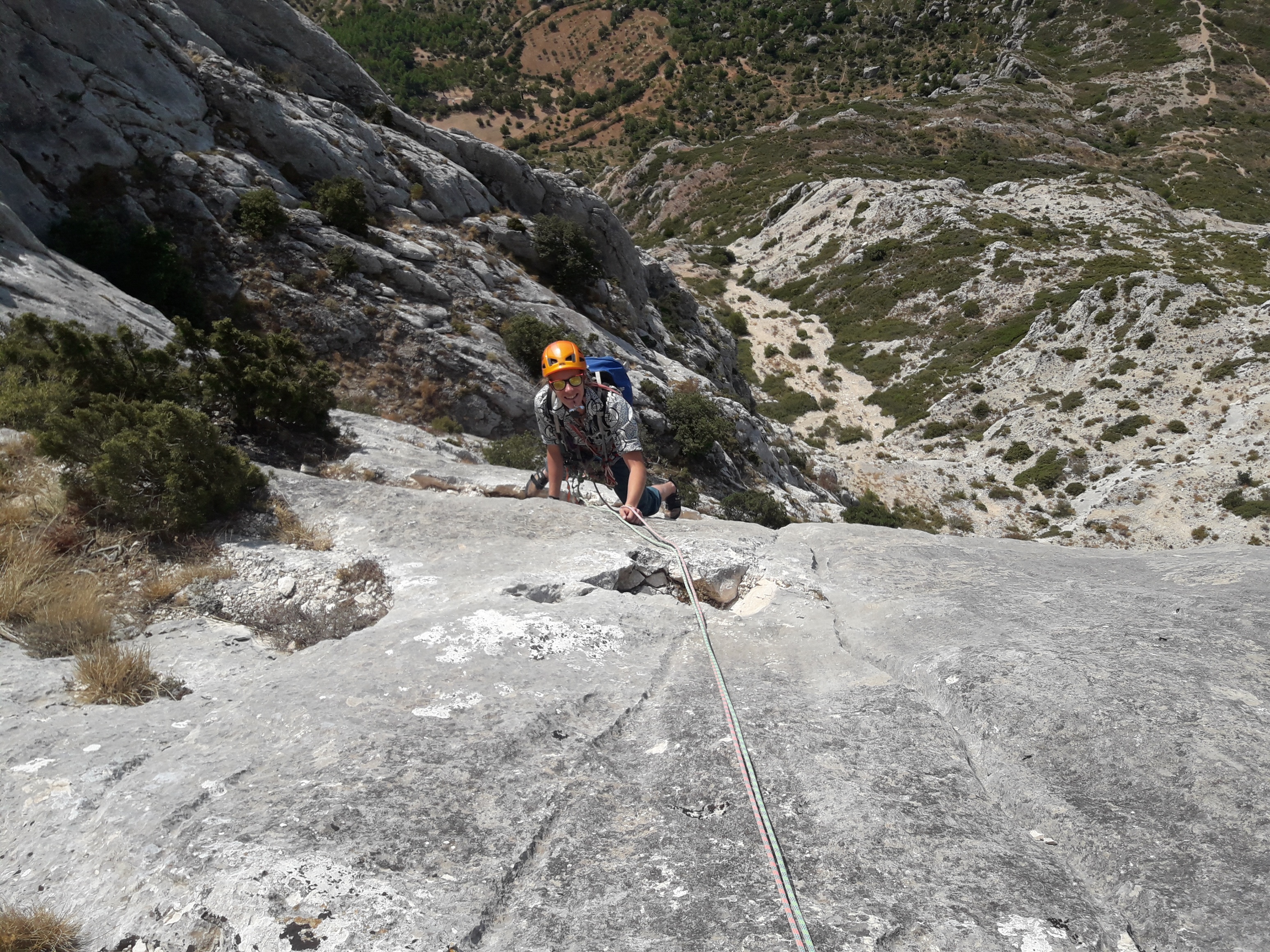 L5 : 6b; Dalle technique sur-équipée puis sortie au sommet facile.