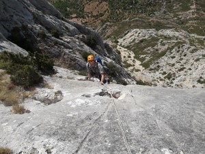 L4 : 5c; Louvoyer en ascendance à droite, dalle/plaques magnifiques et partiellement équipées.