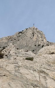 Accès : Conseillé par une voie au socle (grotte de l’os) : de très belles voies en conglomérat (ici des brèches, rien à voir avec Canaille ou Riglos !).