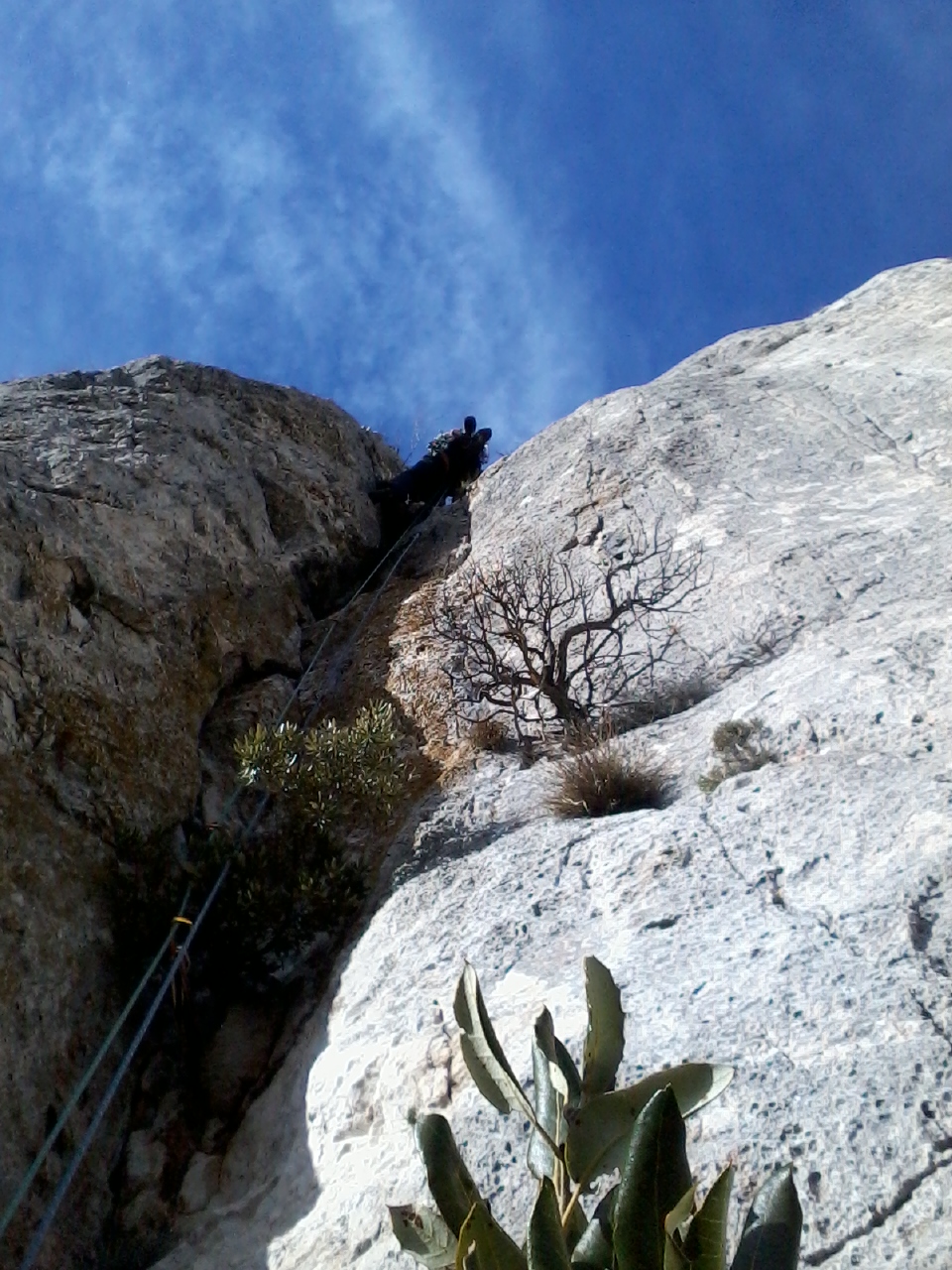 L1: 6a (contournable par la gauche en 3). Monter plus ou moins directement à l’arbre, jolie longueur. Le relais est facultatif. 20 mètres