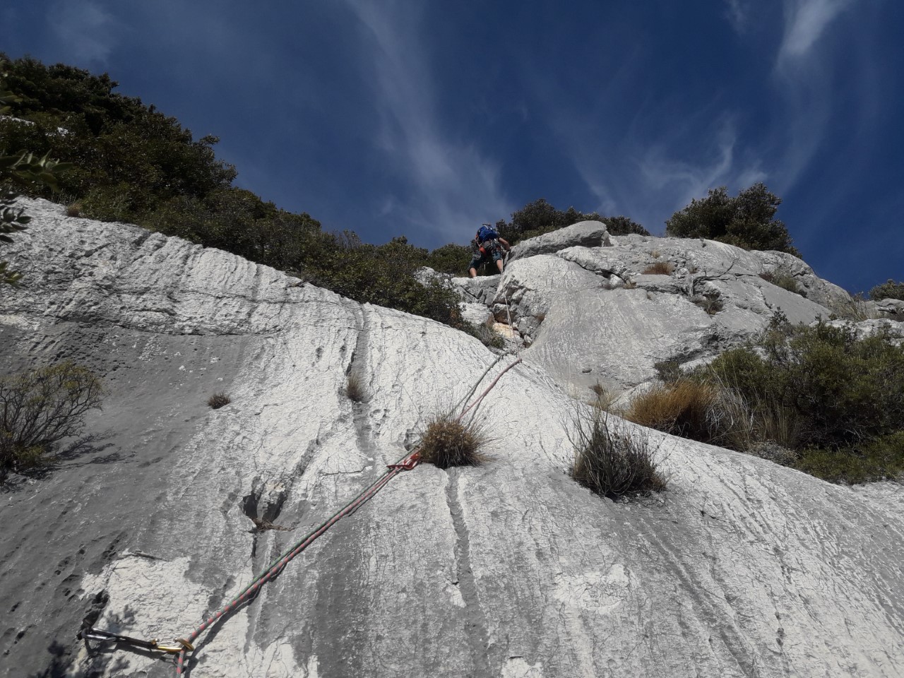 L9 : 6b; On poursuit par ce dièdre, on débouche pas très loin du rappel précédent…
