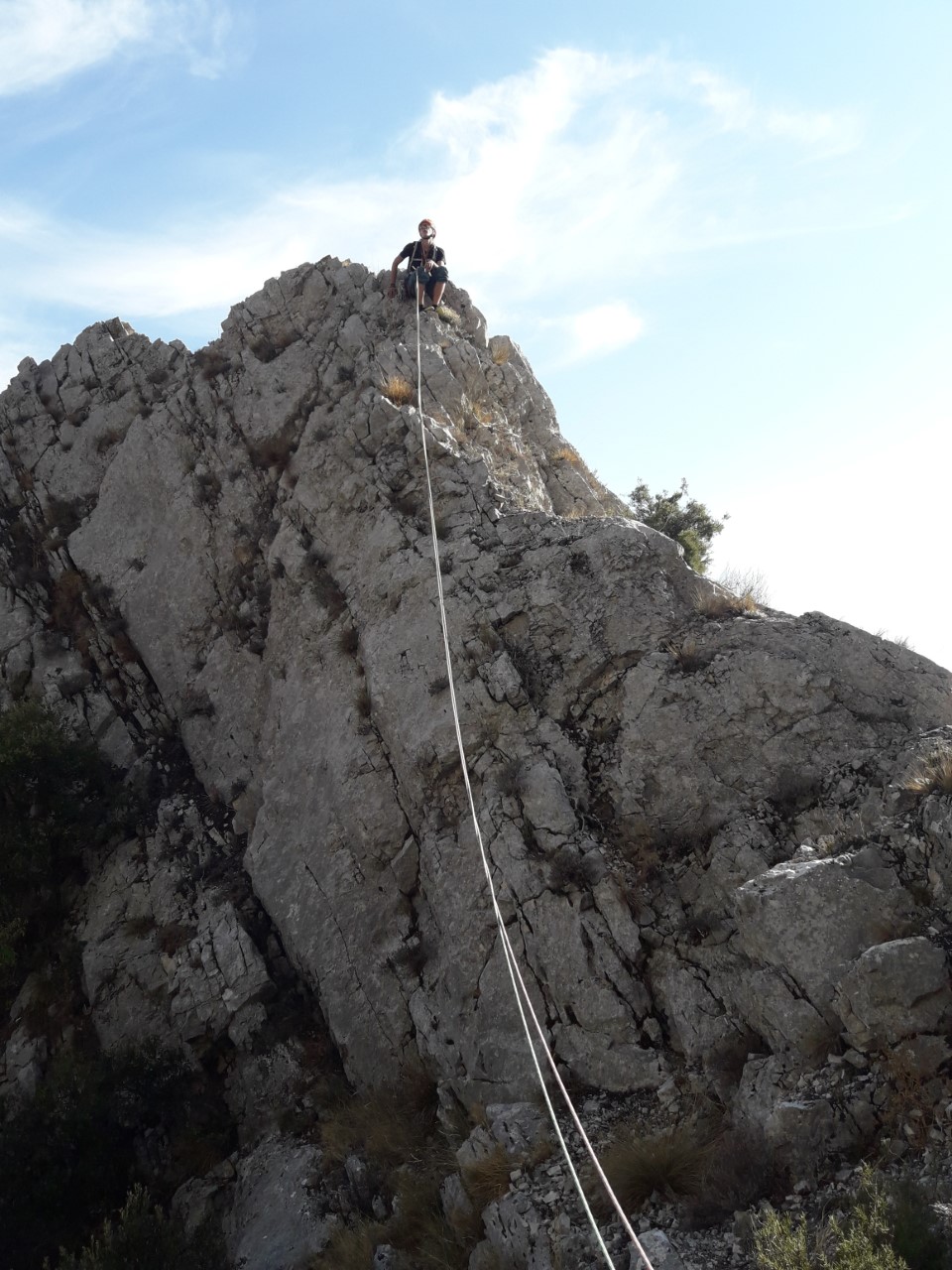 Rappel : en contrebas à droite en regardant le sommet, exposé pour y aller et difficile à trouver. 30 mètres.