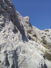 L8 : 6a++; Dièdre à droite très malcommode malgré les apparences, puis très beau mur équipé de pitons (pas de goujons, ancien itinéraire qui n’avait jamais été déclaré), pas si évident à vue, y’a un piège…