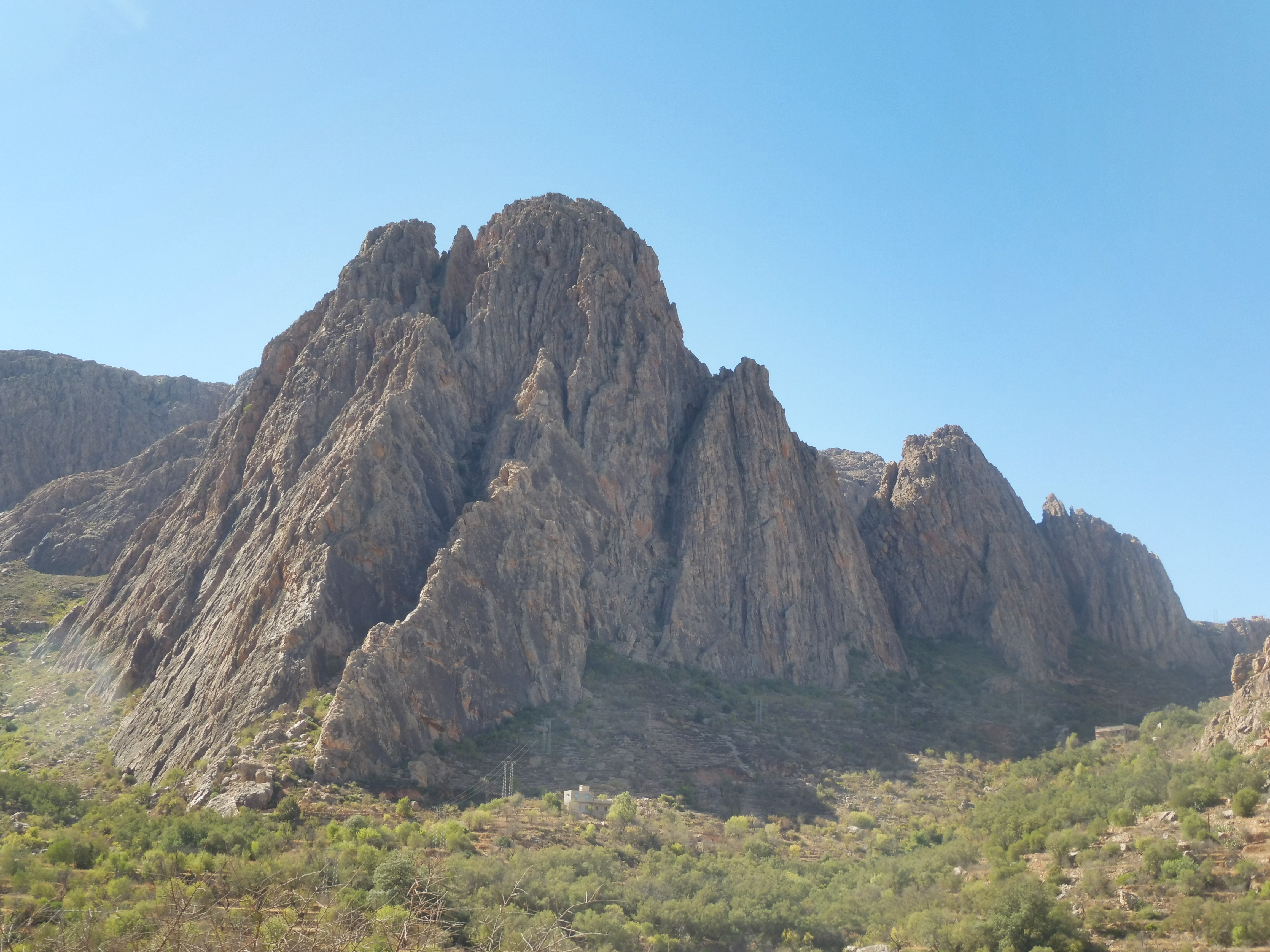 Dire que l’on grimpe à Tafraout est très réducteur. Au nord du village, deux massifs principaux ont été (à peine) exploités par les grimpeurs et alpinistes, et ce seulement depuis 1991. Cela est incroyable que des parois si facilement accessibles aient attendu si longtemps les premiers visiteurs (britanniques). Ces vallées regorgent de falaises dépassant régulièrement 300 mètres, et pouvant aller jusqu’à 800 mètres. Le rocher y est incroyable, une quartzite souvent très solide mais malheureusement très compacte, impliquant une escalade souvent très engagée voir régulièrement exposée, l’éthique étant ici rigoureuse…