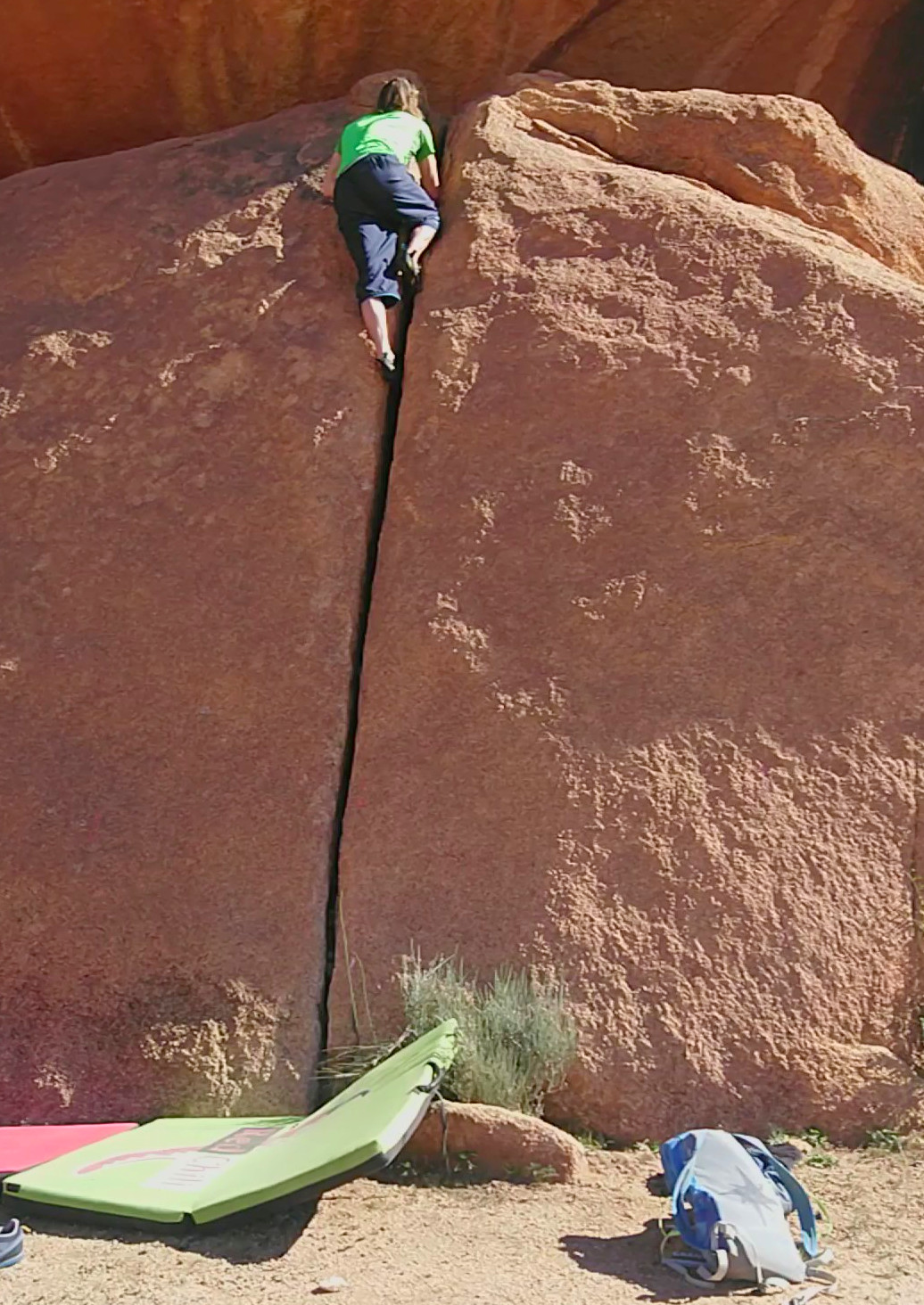 Autour du village, Tafraout est bordé par un étonnant massif granitique. De loin, on croirait avoir Hampi ou Bishop, ces célèbres sites de bloc, entourés de dôme hallucinants. Sur place, on réalise que le gros grain empêche pas mal d’opportunités et que le rocher, à cause des fortes températures estivales, forme parois une croûte cassante. Cependant, après de nombreuses explorations, des dizaines de passages de 2 à 150 mètres ont été recensés et il est bien probable que dans quelques années cela devienne particulièrement intéressant. Certaines fissures y sont simplement majeures ! Le commerce « Maison Troc » loue des crash pads pour les amateurs de bloc.