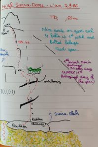 Il en résulte deux très belles longueurs, différentes et complémentaires. La première reste encore à libérer en tête (difficile à l’ouverture d’enchaîner !), et une variante franchissant le mini toit par la fissure de gauche peut rendre la voie encore plus belle. La seconde, plus gentille, propose une très belle grimpe en fissure fine.