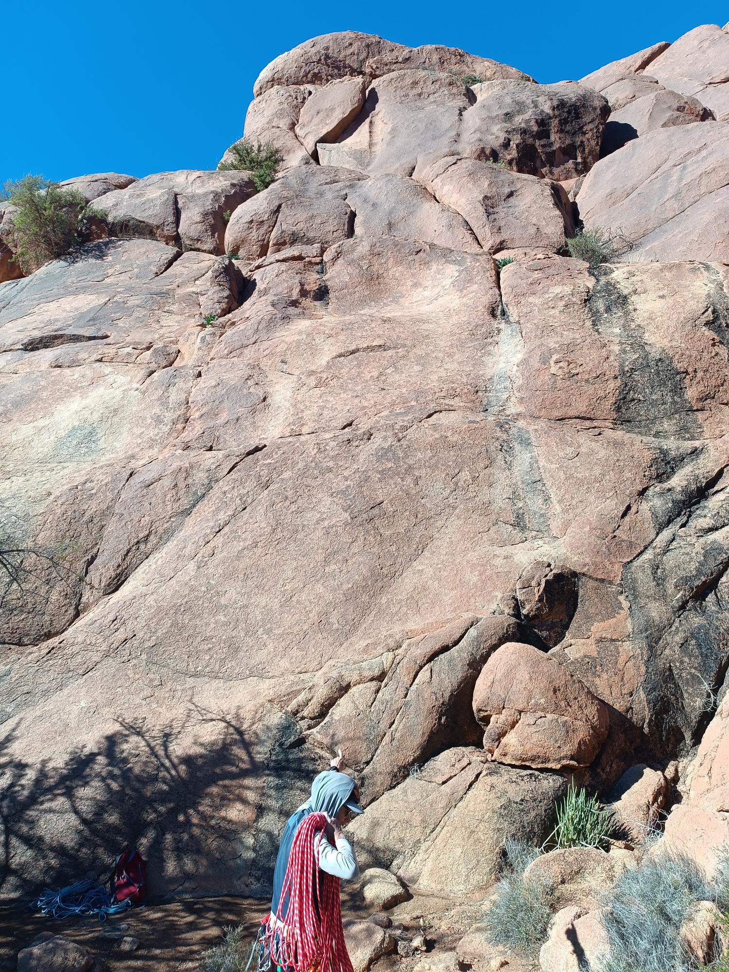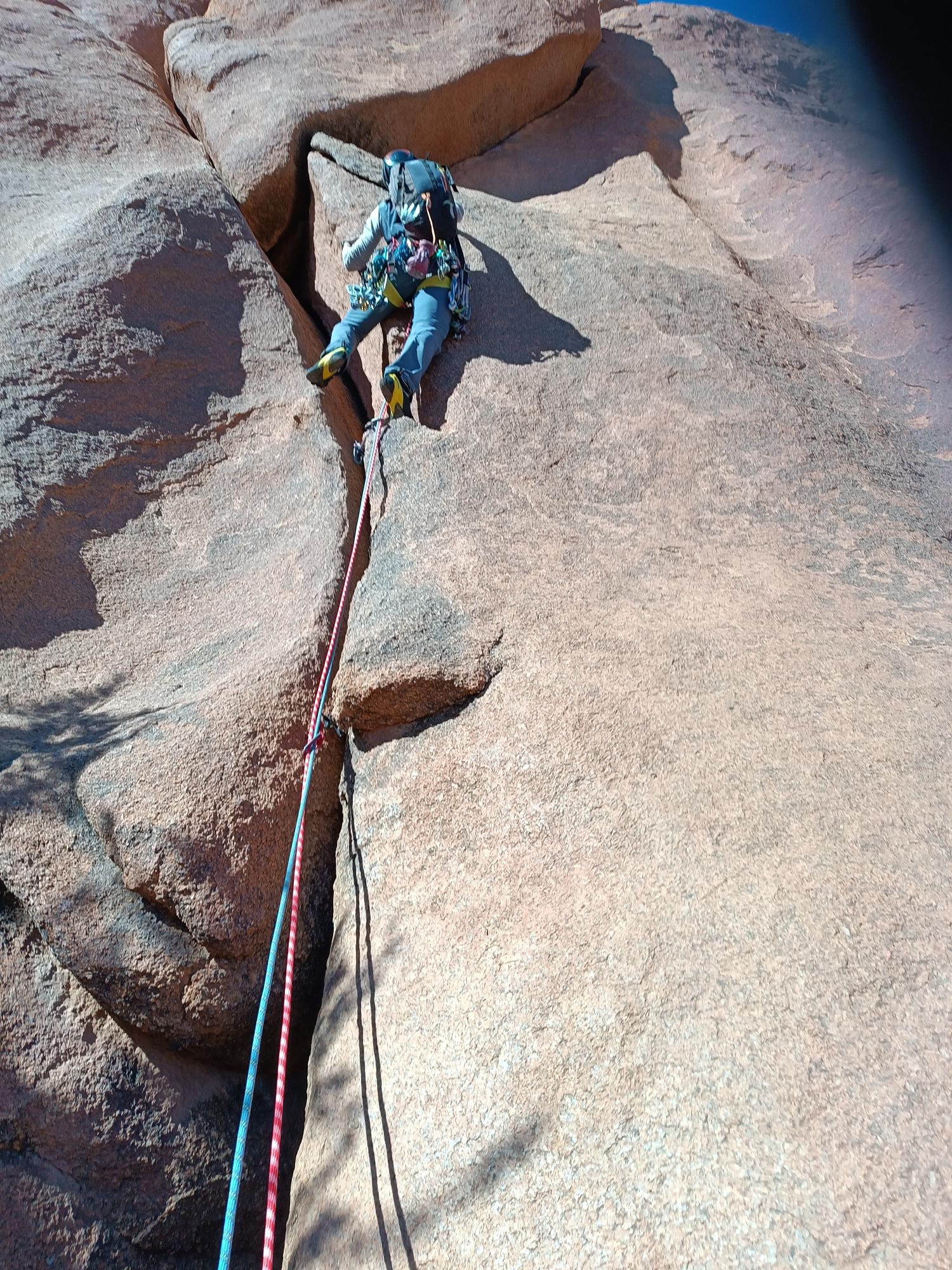 Dreamweaver est sans doute la voie la plus courue du secteur : en plus de proposer une escalade très intéressante et variée, c’est également l’itinéraire qui a le plus d’ampleur. Six longueurs (certes courtes) dans le granit de Tafraout est plutôt rare. Même si cela ne remplira sûrement pas une journée complète, c’est un bonheur de pouvoir trainer un peu dedans. L’approche très courte et le retour également facile permettront facilement d’enchaîner deux voies.