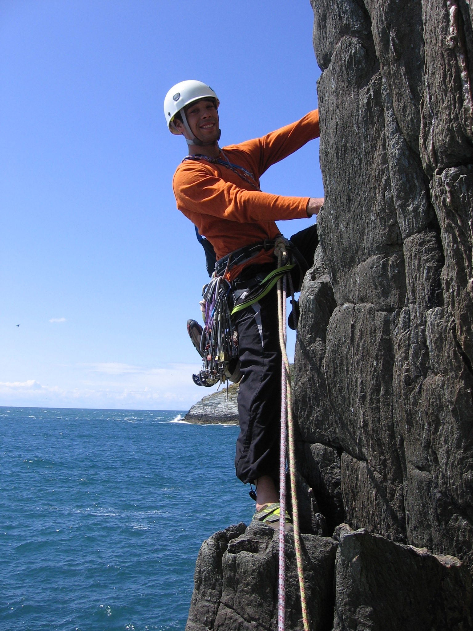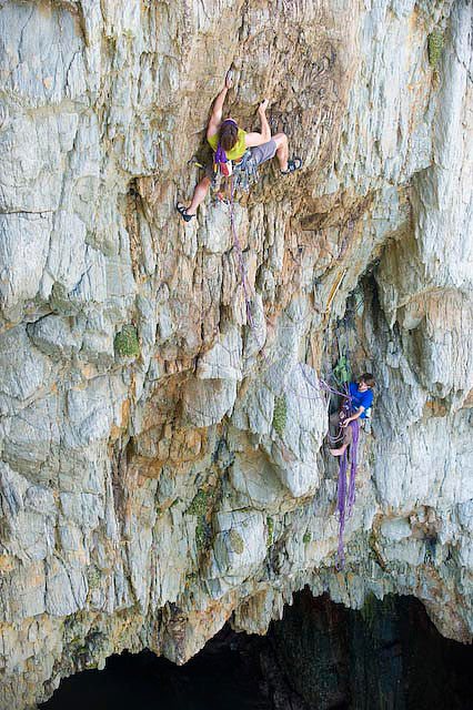 Même à Gogarth, cette voie est exceptionnelle. Elle rentre sans soucis dans le top 10 des voies que j’ai pu gravir, et je n’en connais aucune qui puisse lui ressembler. Elle traverse une arche impressionnante au dessus de la mer.